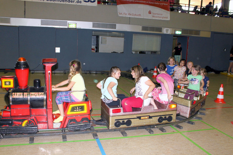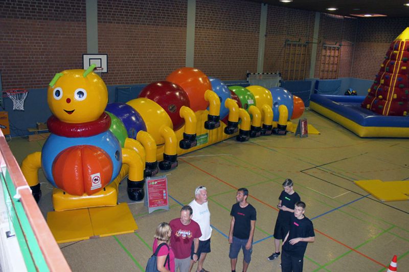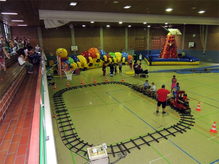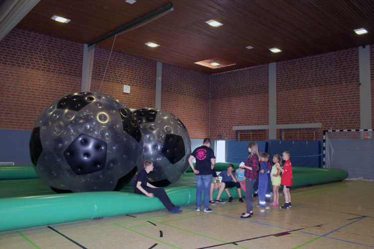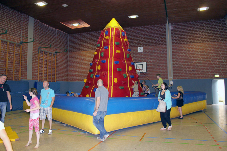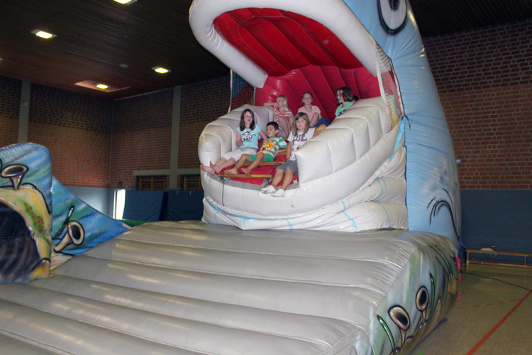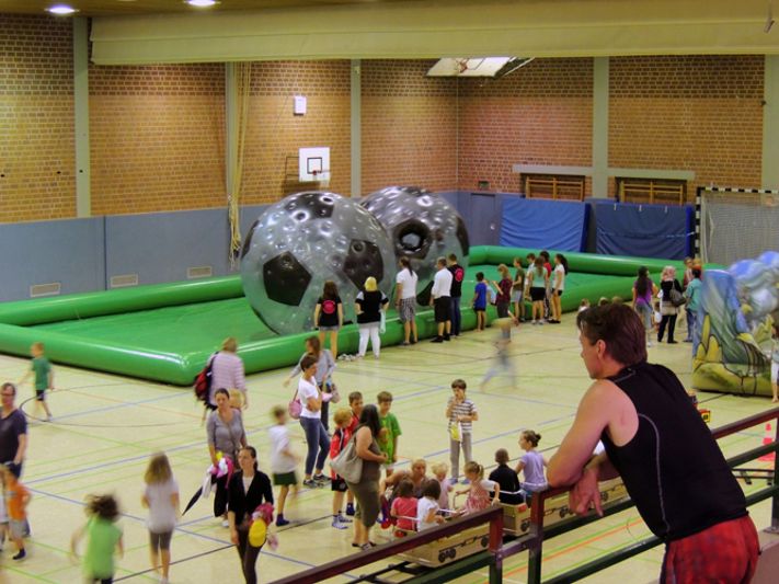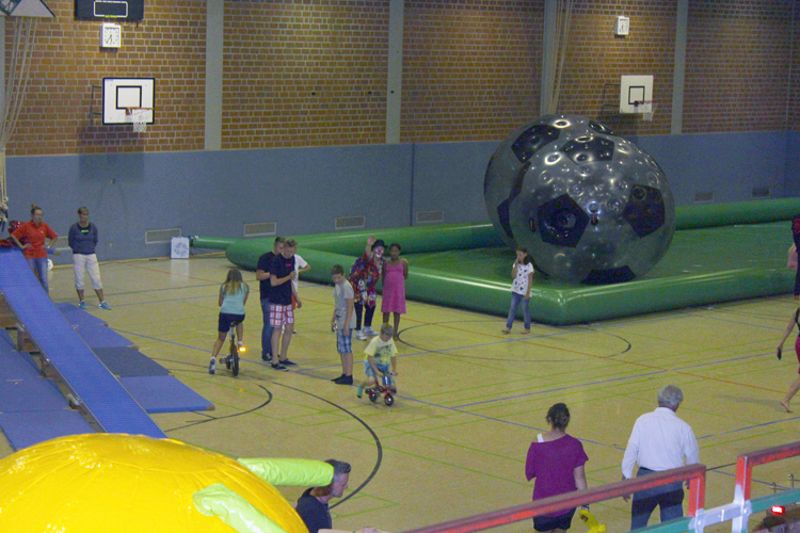 Kurz entschlossen wurde das Spielefest an zwei Schauplätze aufgeteilt: Die, denen das Wetter nichts ausmachte konnten sich im Rohmelbad austoben. Für die Anderen wurde ausreichend Spielplatz in der KGS - Sporthalle geboten.